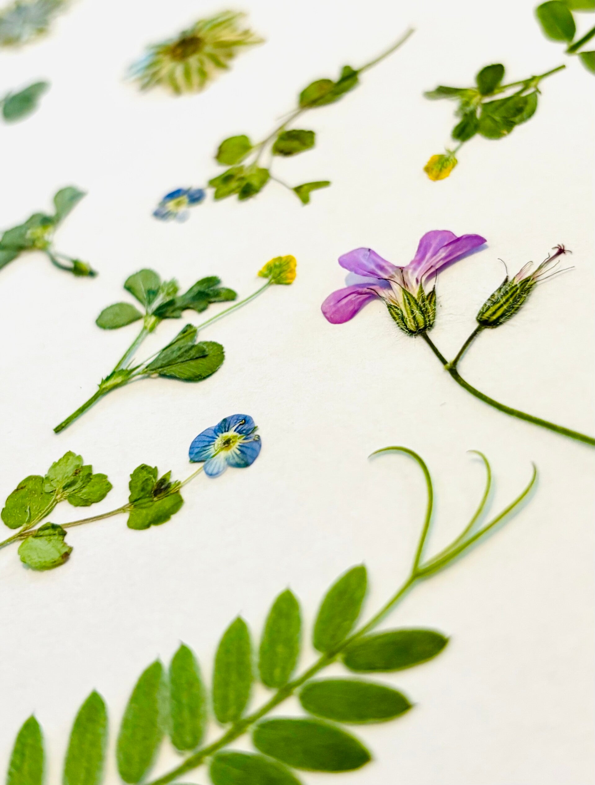 Réalisés à la main à partir de fleurs séchées, pierres semi-précieuses et argile polymère.