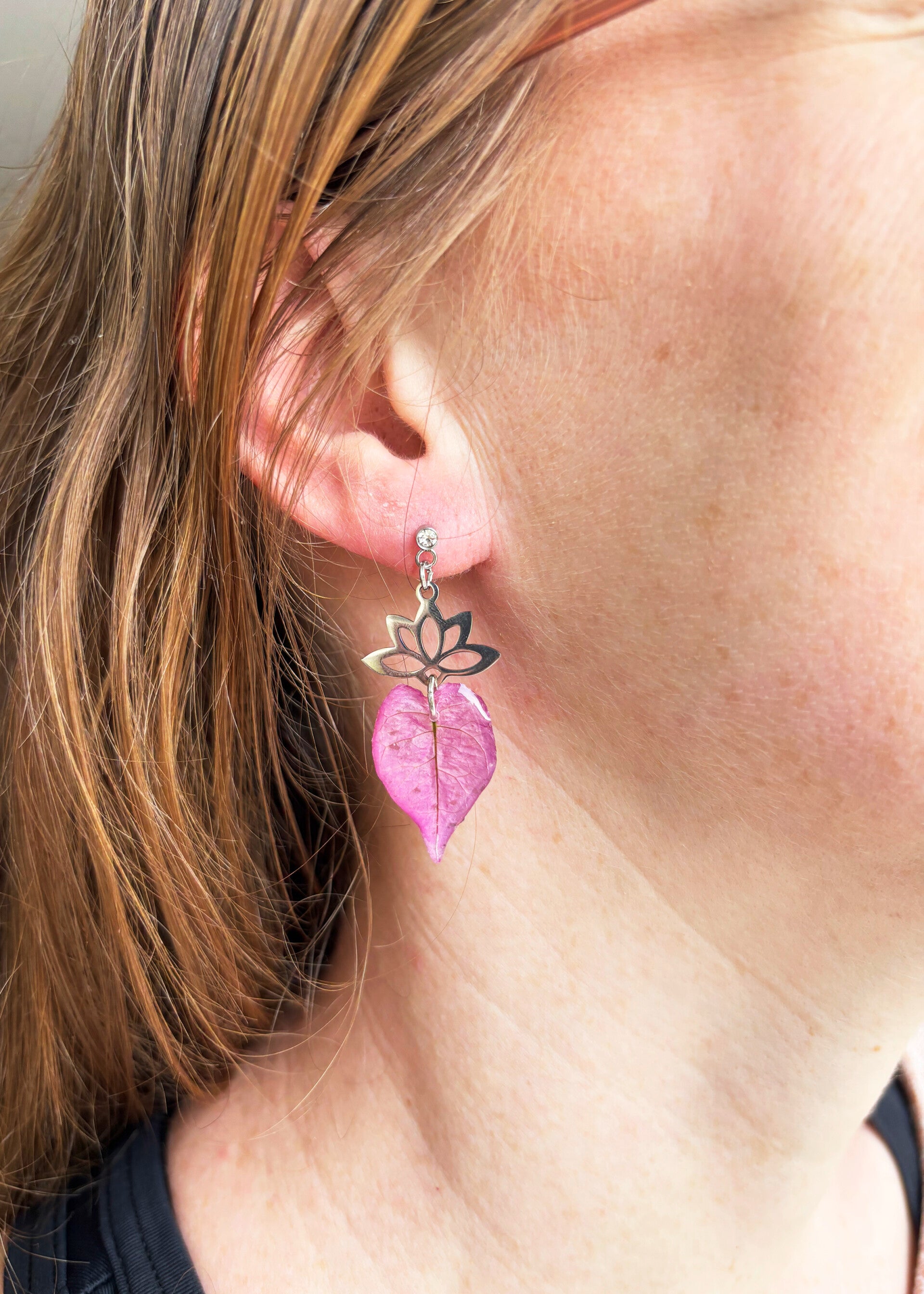 De jolies boucles d'oreilles printannières dans les tons fuchsia, livrées dans un joli coffret, prêtes à offrir.